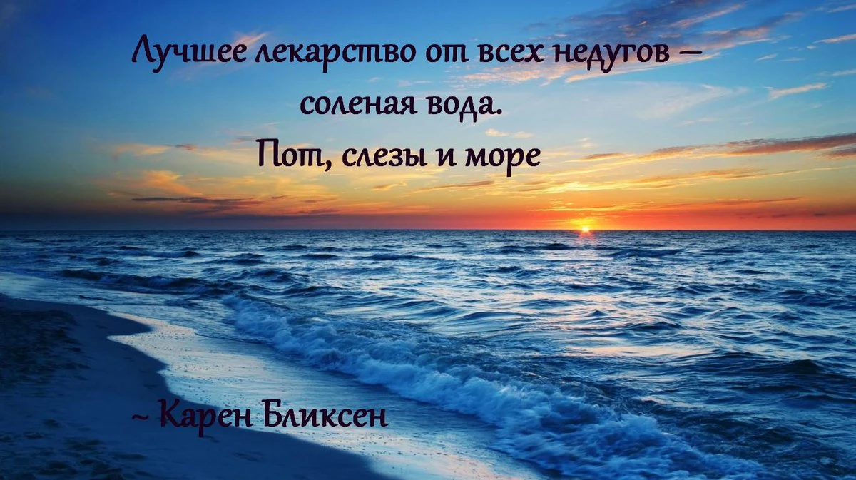 Карен Бликсен: «Лучшее лекарство от всех недугов — соленая вода. Пот, слезы и море»