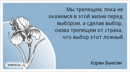 «Давай позволим себе бессмысленный риск! Какой иначе смысл в нашей жизни?», — писала Карен.