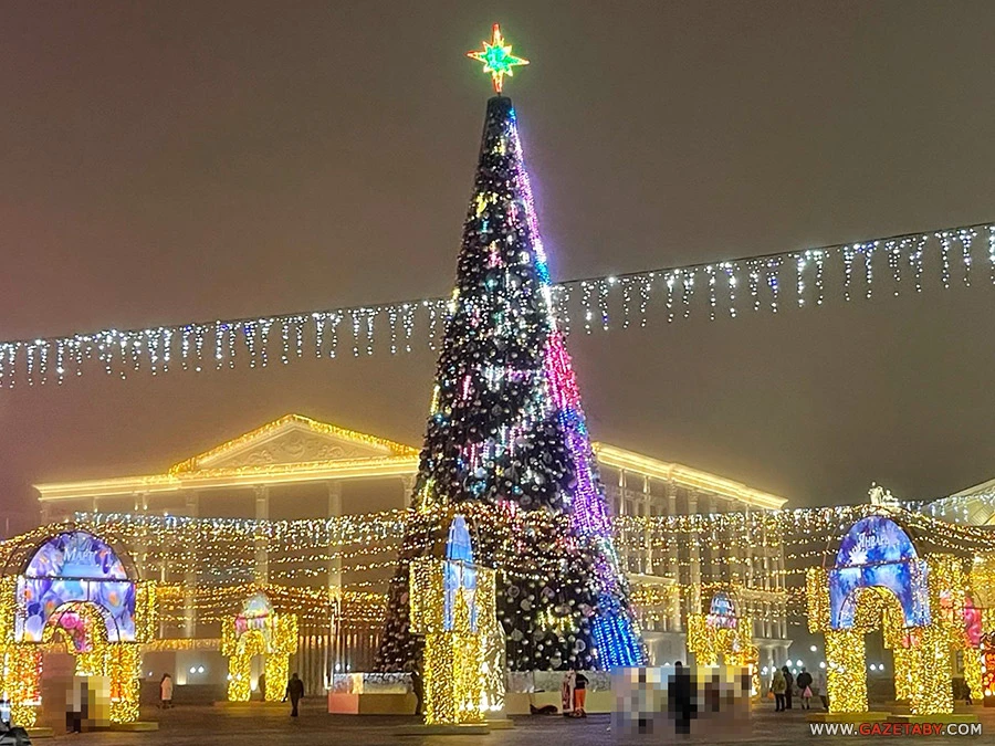 В Минске зажгли главную елку страны на Октябрьской площади. Праздничная иллюминация горит и в центре, и в других частях города.
