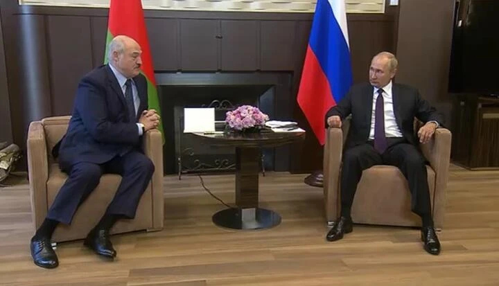 Это знаменитый кадр, на котором запечатлена «вассальная» поза Александра Лукашенко по отношению к Владимиру Путину. Российский диктатор, наоборот, сидит как начальник, выслушивающий доклад подчиненного. Подобных снимков можно отыскать немало.